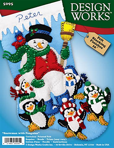 Design Works - Calza di Natale in Feltro, Motivo: Pupazzo di Neve e Pinguini, Multicolore