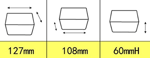 Dimensioni: parte superiore 127 mm x 127 mm, parte inferiore 108 mm x 108 mm, altezza 60 mm
