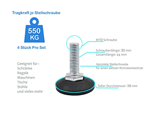 Design61 4 viti di regolazione Ø 38 mm con vite di regolazione zincata M10 x 30 mm
