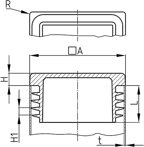 Design61 4 tappi quadrati per tubi, 80 x 20 mm, con lamelle per pareti di spessore 1-2 mm