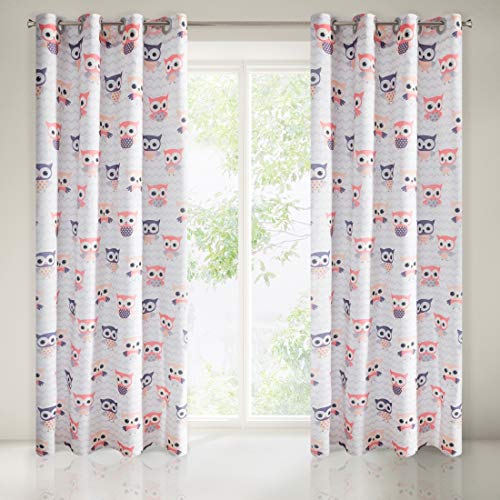 Design91 - Tenda per bambini con 8 occhielli, morbida, stile moderno, per camera da letto, cameretta dei bambini, colore bianco e rosa, 140 x 250 cm