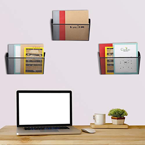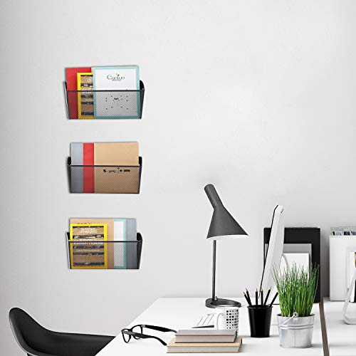 DESIGNA Organizer per file da parete Supporto per file da parete in metallo Appeso Letter Letter Letter Documenti cartacei File Organizer per Office Home Nero 3 confezioni