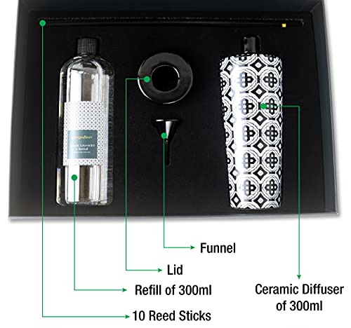 Designdfuser ® Diffusore di canna da 300 ml in Ceramica con 3 Fragranze naturali - Gelsomino Lavanda legno di Sandalo - e design elegante ideale per la casa, ufficio, spa e regali.