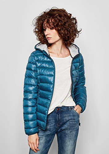 Aspetto lucido e setoso in un design a contrasto, cappuccio fisso e cerniera frontale colorata