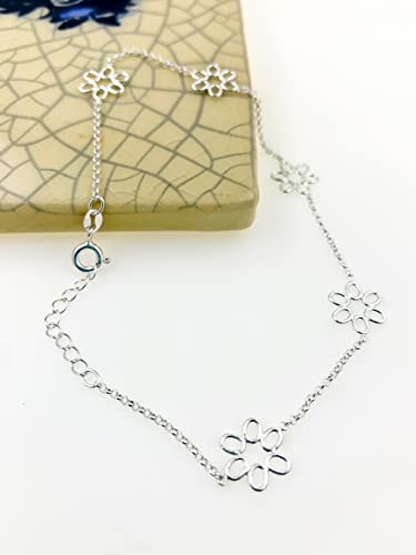 Designer Inspirations Boutique ® - Cavigliera da donna in argento Sterling, con 5 margherite, regolabile in lunghezza da 23 a 25 cm