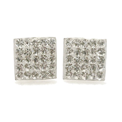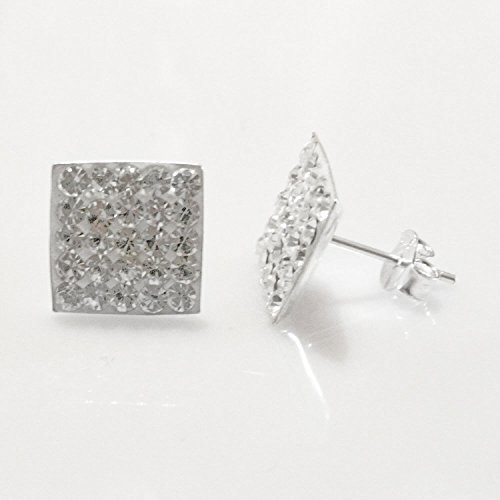 Designer Inspirations Boutique ® - Orecchini a perno da uomo, in argento Sterling con micro pavé di cristalli Swarovski, quadrati, dimensioni 10 mm, bianco/trasparente, in stile David Beckham