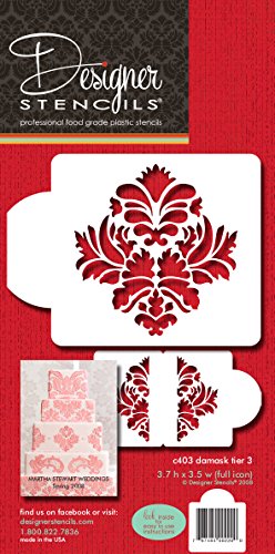 Designer Stencils C403 Damask Cake Tier 3 Cake Stencil, Beige/Semi-Transparent