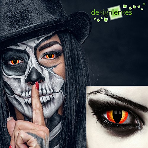 DESIGNLENSES, Lenti colorate rosse e gialle, senza gradazione, 1 paio (2 pezzi), Lenti da 17 mm per effetto occhi grandi + custodia per lenti "Sauron's Eye"