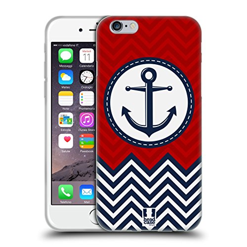 Head Case Designs Blu Ancora Zigzag Nautique Custodia Cover in Morbido Gel Compatibile con Apple iPhone 6 / iPhone 6s
