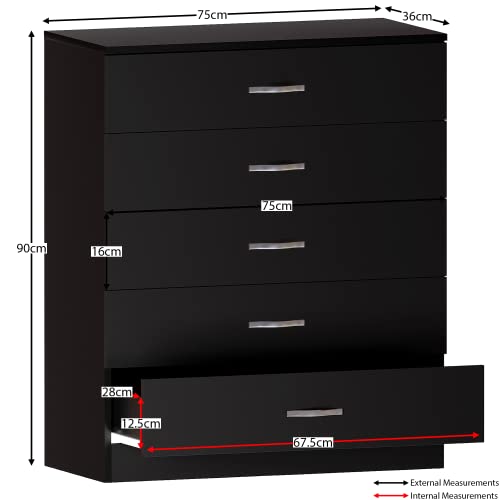 Vida Designs Cassettiera Nera con 5 cassetti, Maniglie in Metallo, Guide Anti-piegamento, Legno ingegnerizzato, Nero, 5 Drawer
