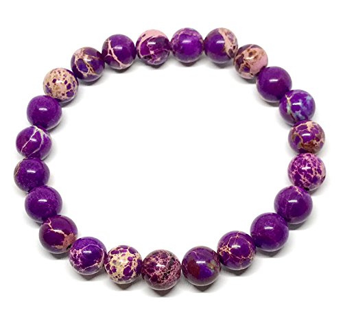 GOOD.designs Chakra, Bracciale in perle di 8 mm, sedimenti marini, diaspro, pietre naturali, bracciale in acciaio e in giada., Lila