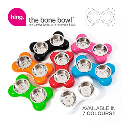 Hing Designs - Ciotola per Cani Grande, Motivo: Osso, Colore: Bianco