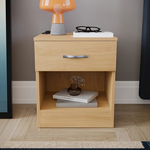 Vida Designs Pino Comodino, 1 cassetti con Maniglie in Metallo e corridori, Sistema Unico con Guide, Riano mobili per Camera da Letto, Pino