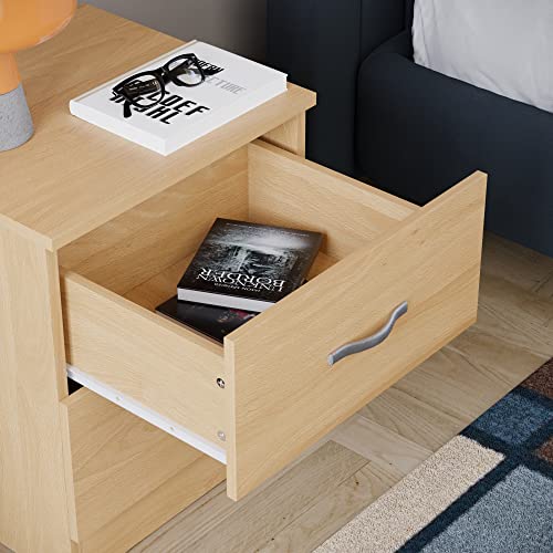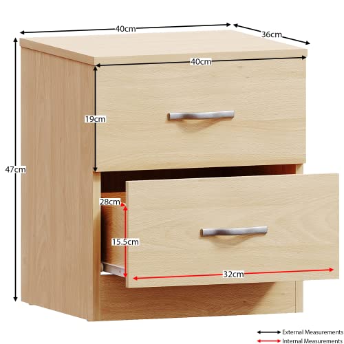 Vida Designs Pino Comodino, 2 cassetti con Maniglie in Metallo e corridori, Sistema Unico con Guide, Riano mobili per Camera da Letto
