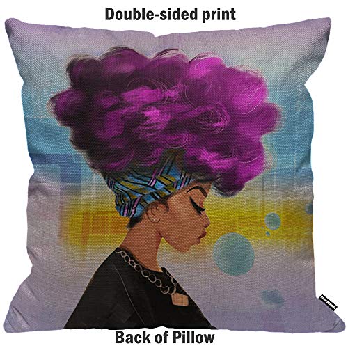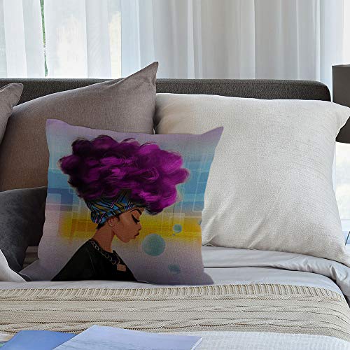 HGOD Designs - Federa per cuscino da donna, stile afro, con motivo a capelli viola, decorazione per la casa, per uomo/donna/ragazzo/ragazza, soggiorno, camera da letto, divano, Multi 01, 18X18 Inch