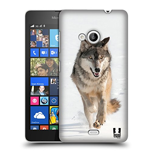 Head Case Designs Lupo Grigio Che Corre Animali Selvatici Back Cover Protettiva Clicca e Metti per Microsoft Nokia Lumia 535, Lumia 535 Dual