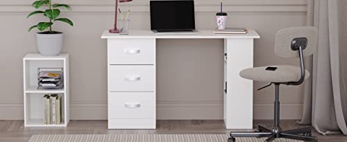 Vida Designs Mason Scrivania Ripiani e 3 Cassetti, per Casa, Ufficio, PC, Computer Portatile, Tavolo da Studio, Mobili Bianco, Legno Ingegnerizzato, 3 Drawer, H 72 x L 120 x P 49 cm Circa
