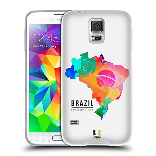 Head Case Designs Land of Opportunity Brasile Mappe Acquarellate Cover Morbida in Gel per Samsung Galaxy S5 / S5 Neo