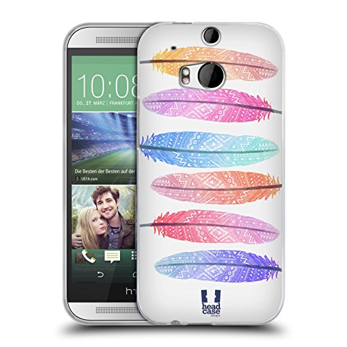 Head Case Designs Silhouette Colorata Piume Azteche Back Case Cover in Silicone per HTC One M8