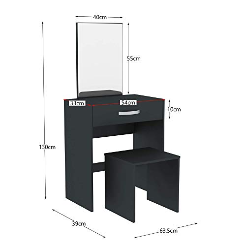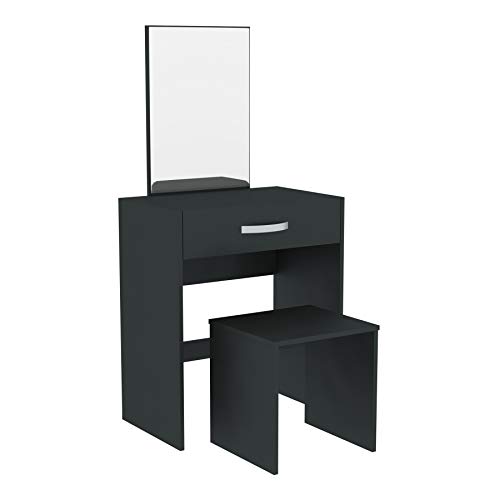 Vida Designs Tavolo da Toeletta Isla con 1 Cassetto, Specchio e Sgabello, Set per Camera da Letto, Trucco, Cosmetici, Scrivania e Credenza, Colore: Nero, 130 x 63.5 x 39 cm