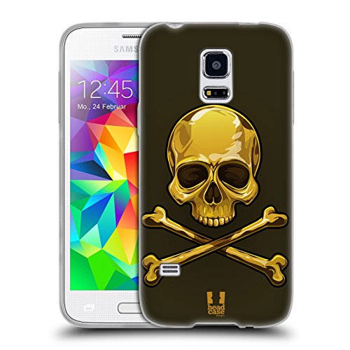 Head Case Designs Oro Teschio E Ossa Cover Morbida In Gel Per Samsung Galaxy S5 mini