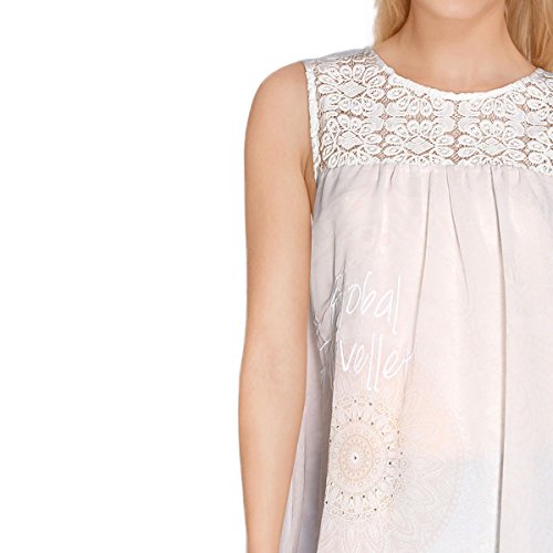 Desigual BLUS_Cuello SM Lace Camicia, Bianco (Tiza 1010), Medium Donna