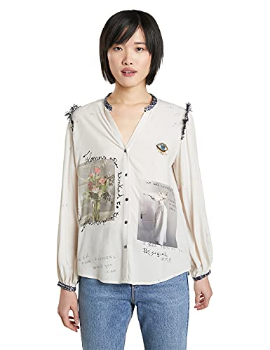 Camicia da donna con colletto alla coreana e stampa fotografica di opere d'arte con dettagli in tweed. Nuova collezione Donna AI21 Desigual.