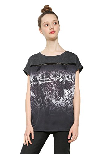 Desigual TS_Leopard Degrade T-Shirt, Grigio (Gris Medio 2007), Large Donna