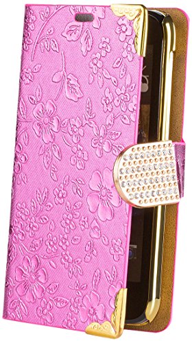 HTC Desire 310 | iCues bag cromo Fiore rosa | [Screen protector Compresi] floreale strass Glitter Glitter lusso di Bling delle donne delle signore delle ragazze Chromebook incernierato manicotto protettivo tasca il cellulare sacchetto di aprire caso di vibrazione del Custodia Cover Case Tasca Borsa