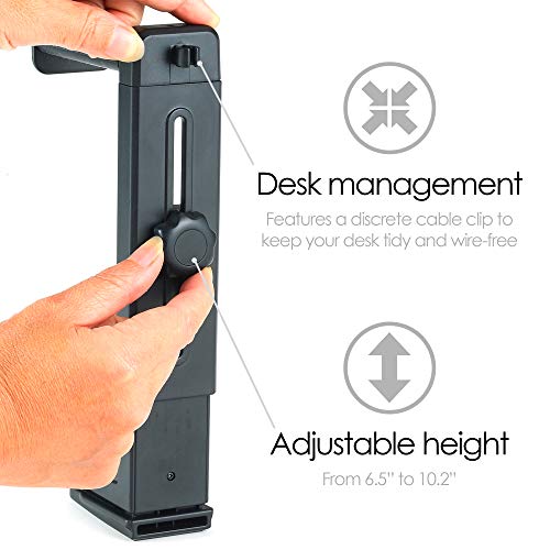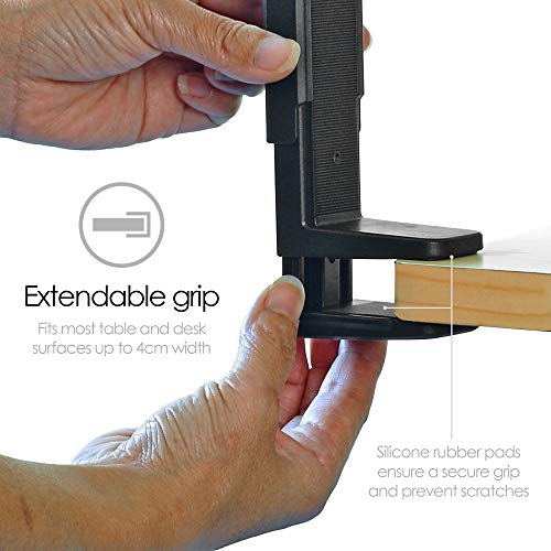 【 Morsetto Regolabile 】 L'altezza del morsetto per le cuffie è regolabile ad un'altezza da 1 a 4 cm. Allungabile fino a 4 cm e restringente fino a 1 cm può essere regolato per adattarsi a quasi tutte le scrivanie.