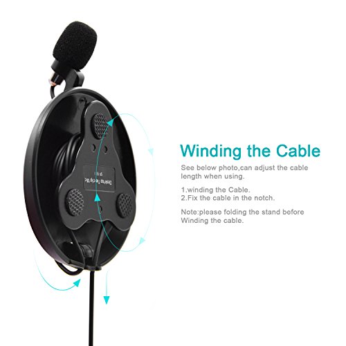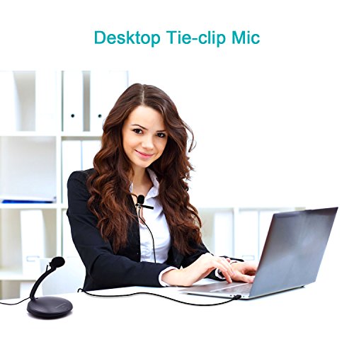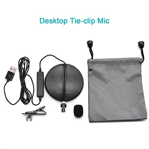 USB Tie Clip Desktop Condenser Microphone Mini Portable Audio Sound Vocal Recording Device Dual Purpose Mic Lavalier Plug and Play with Folding Base Stand, Foam Windscreen, and Carrying Pouch [Black]