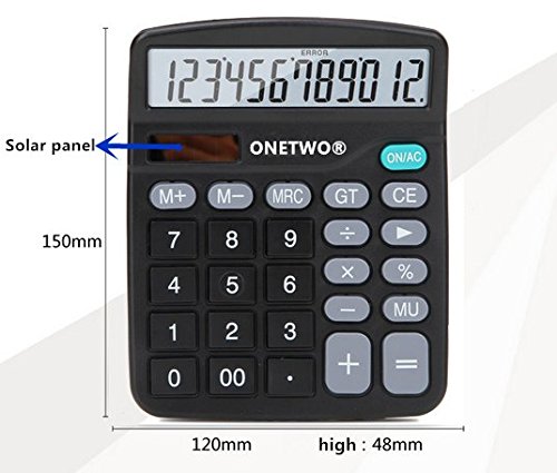 Desktop ufficio 12 cifre display standard funzione elettronico calcolatrice scientifica - calcolo macchina per solare e a batteria applicabile a Student Business contabilità Big black