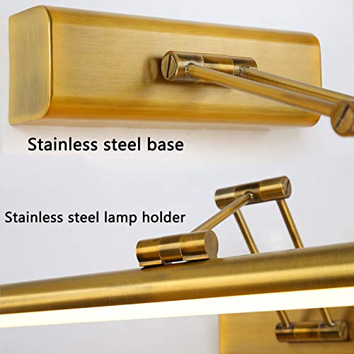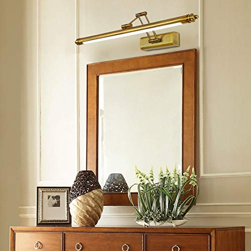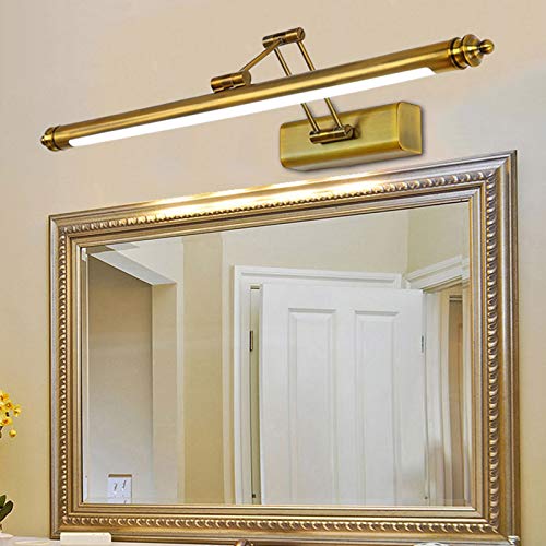 DESLP Lampada da Specchio Bagno Vintage, Luce da Specchio Retro Ottone con Braccio Regolabile e Base in Acciaio Inox, Lampada Bagno Parete LED Lampada Armadio Luce Calda 3000K per Toilette,60cm/12w