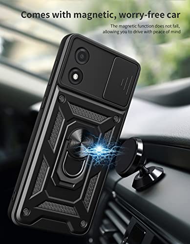 【Cover con Anello magnetico】 Cover Motorola Moto E13 supporto ad anello è realizzato in metallo, resistente, può ruotare di 360 gradi, aiutarti a tenere il telefono in modo facile e sicuro e può essere utilizzato anche come supporto. Il guscio ha una piastra metallica incorporata, che può essere collegata a un supporto magnetico per auto, e il design è molto intuitivo.