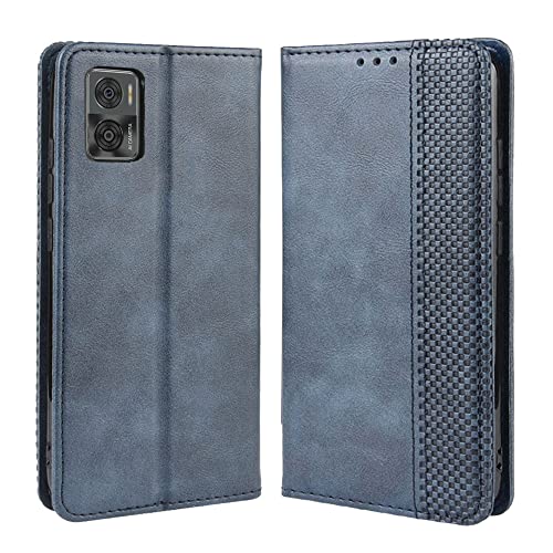 DESSEN Cover per Motorola Moto E22 (Mote e 22), Wallet Style PU Leather Shell, Custodia a Libro Flip Smart Magnetica con Appoggio e Porta Carte di Credito. Blu