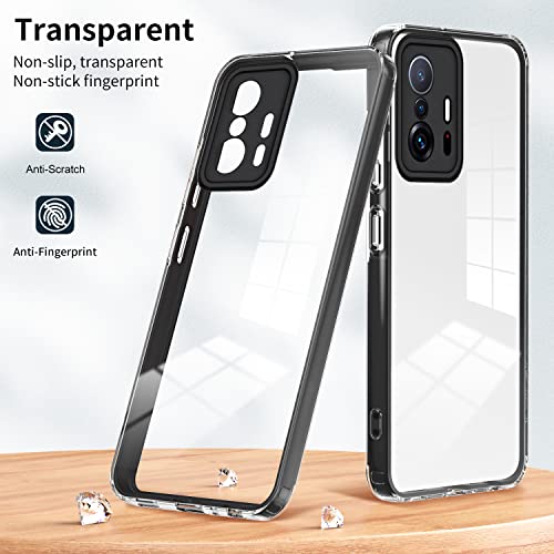 DESSEN Cover per Xiaomi Mi 11T 5G / Xiaomi Mi 11T PRO 5G, Custodia in TPU Trasparente, Cornice per PC Colorata, Protettiva in Silicone Antiscivolo Ultra Sottile Bumper Case. Nero