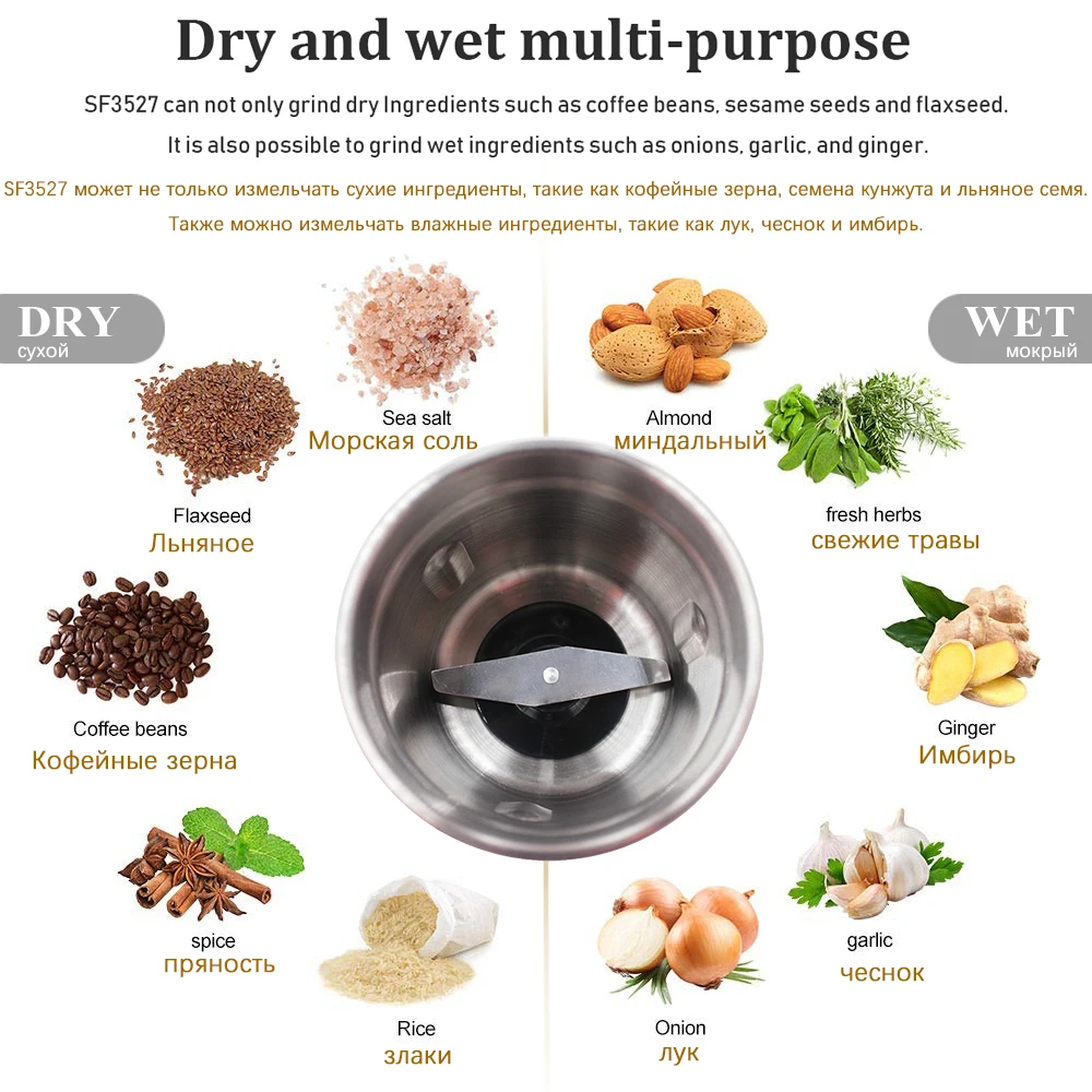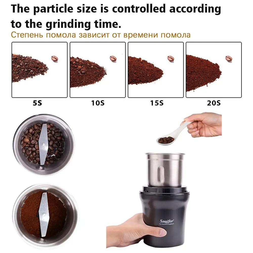 Detachable Electric Coffee Grinder Maker Dry and Wet 2 in 1 Stainless Steel Beans Easy Clean Mill Herbs Nuts 220V Sonifer