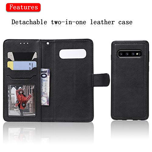 JZ [Detachable 2 in 1 Wallet Custodia for per Samsung Galaxy S10 [Fit Car Mount] PU Leather Flip Cover with Wrist Strap - Black