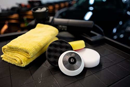 ✅ 85 mm PAD MEDIUM: la spugna per lucidatura di media durezza è perfetta per la seconda lucidatura e la lavorazione di prodotti Medium Cut & One Step, giallo, superficie in velcro da 75 mm.