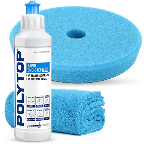 Detailmate Polytop, set di lucidatura per il trattamento professionale dell'auto, set eccentrico: adatto anche per principianti (Rapid One Step Plus + PAD + panno lucidante)