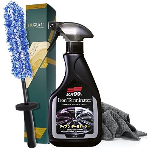 Detailmate Set di pulizia dei cerchioni: Soft99 Iron Terminator 500 ml + spazzola per cerchioni in microfibra Aurum ultra Flat 320GSM