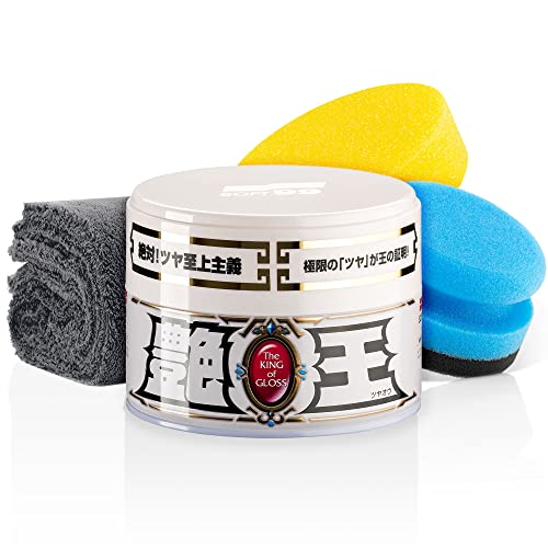Detailmate Soft99 - Set di cera sigillante per auto per vernice chiara, The King of Gloss Light, cera dura per auto, vernice chiara, impermeabile, 300 g + applicatore in spugna + panno in microfibra