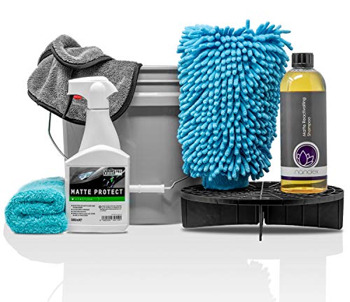Detailmate: vernice opaca Set: nanolex vernice opaca auto Shampoo + guanto da doccia + ValetPRO Matte Protect + Liquid Elements Peppermint panno in microfibra + panno asciutto