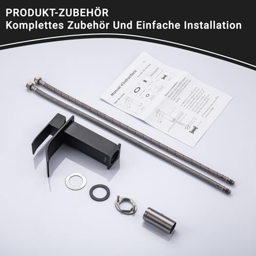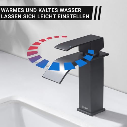 DETBOM Rubinetto Bagno Nero, Cascata Rubinetto In Acciaio Inox Miscelatore Miscelatore Singola Leva Rubinetti Per Bagno Acqua Fredda e Calda