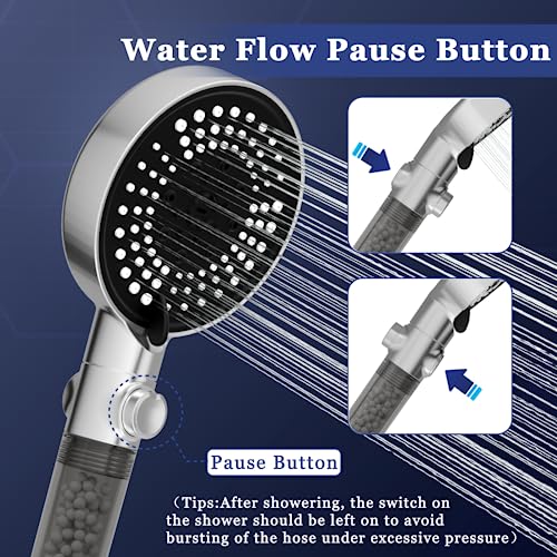 【Design con pulsante di pausa】: questo filtro anticalcare doccia progettato con un pulsante di pausa sulla maniglia per facilitare l'accensione o lo spegnimento dell'acqua durante la doccia, senza dover più regolare il pulsante di controllo dell'acqua sulla valvola dell'acqua quando le mani sono piene di schiuma e macchie d'acqua.