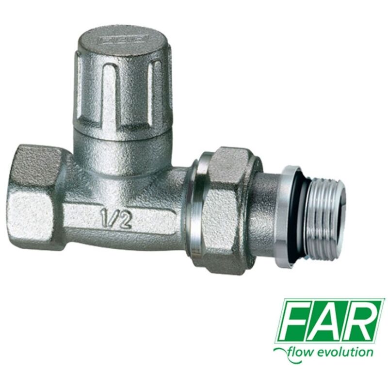1411 12 1/2" Detentore diritto attacco tubo ferro FAR Detentore diritto cromato. attacco per tubo ferro cappuccio in ottone doppio o-ring di tenuta sull'asta otturatore a battuta metallica e tenuta con o-ring codolo preguarnito con guarnizione in EPDM