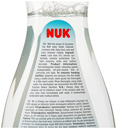 NUK Detergente per biberon, 500 ml, ideale per la pulizia di biberon, tettarelle e accessori, senza profumo, pH neutro, bottiglia riciclata al 100%