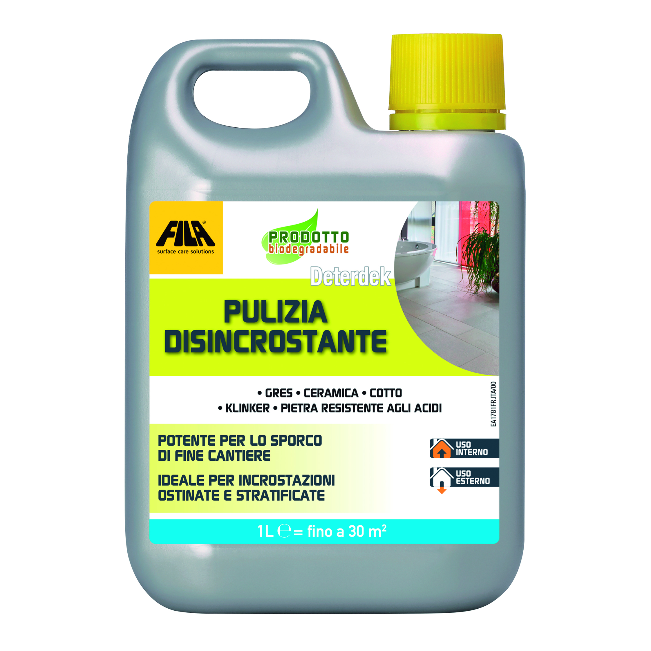 Prodotto specifico per il lavaggio dopo posa e per la pulizia di fine cantiere delle superfici, rimuove i residui di cemento, la polvere e lo sporca da cantiere. Ideale anche per la pulizia profonda del bagno e per la rimozione di incrostazioni di calcare.. Rimuove le incrostazioni del dopo posa e lo sporco da cantiere. Rimuove gli aloni, i residui di cemento e. È efficace anche per la rimozione del residuo di fughe additavate.. Non rovina profili ed elementi in alluminio e acciaio (cappe, condotti, rubinetterie...). Acido tamponato, non sviluppa fumi nocivi per l'operatore e per l'ambiente: sostituisce l'acido muriatico.
