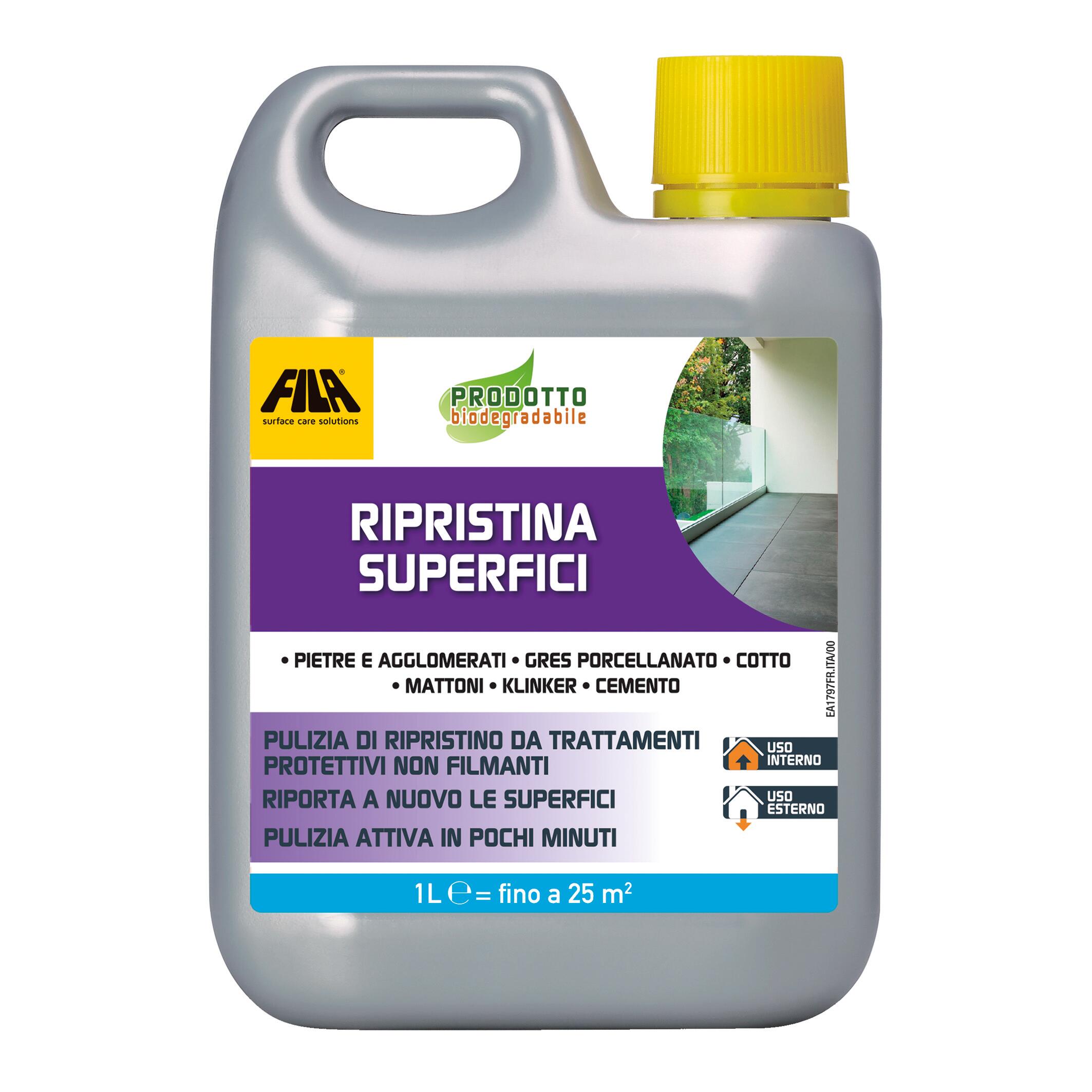 RIPRISTINA SUPERFICI è un prodotti specifico per sgrassare a fondo ed eliminare le macchie più ostinate, rimuovendo lo sporco accumulatosi nel corso degli anni e riportando "come nuova la superficie". Il prodotto è facile da utilizzare e agisce rapidamente, in pochi minuti scioglie anche lo sporco più tenace, riesce a rimuovere anche gli eccessi e gli errori di applicazione dei trattamenti protettivi non lucidi. RIPRISTINA SUPERFICI è ideale per preparare i materiali alla successiva applicazione di un trattamento protettivo.. Sgrassa a fondo ed elimina lo sporco più ostinato, riportando la superficie a nuovo.. Pulisce a fondo le superfici vissute, preparandole per la successiva applicazione di un trattamento protettivo. Rimuove lo sporco impossibile, ripristinando la superficie anche dai trattamenti protettivi non filmanti. Azione rapida, agisce in pochi minuti