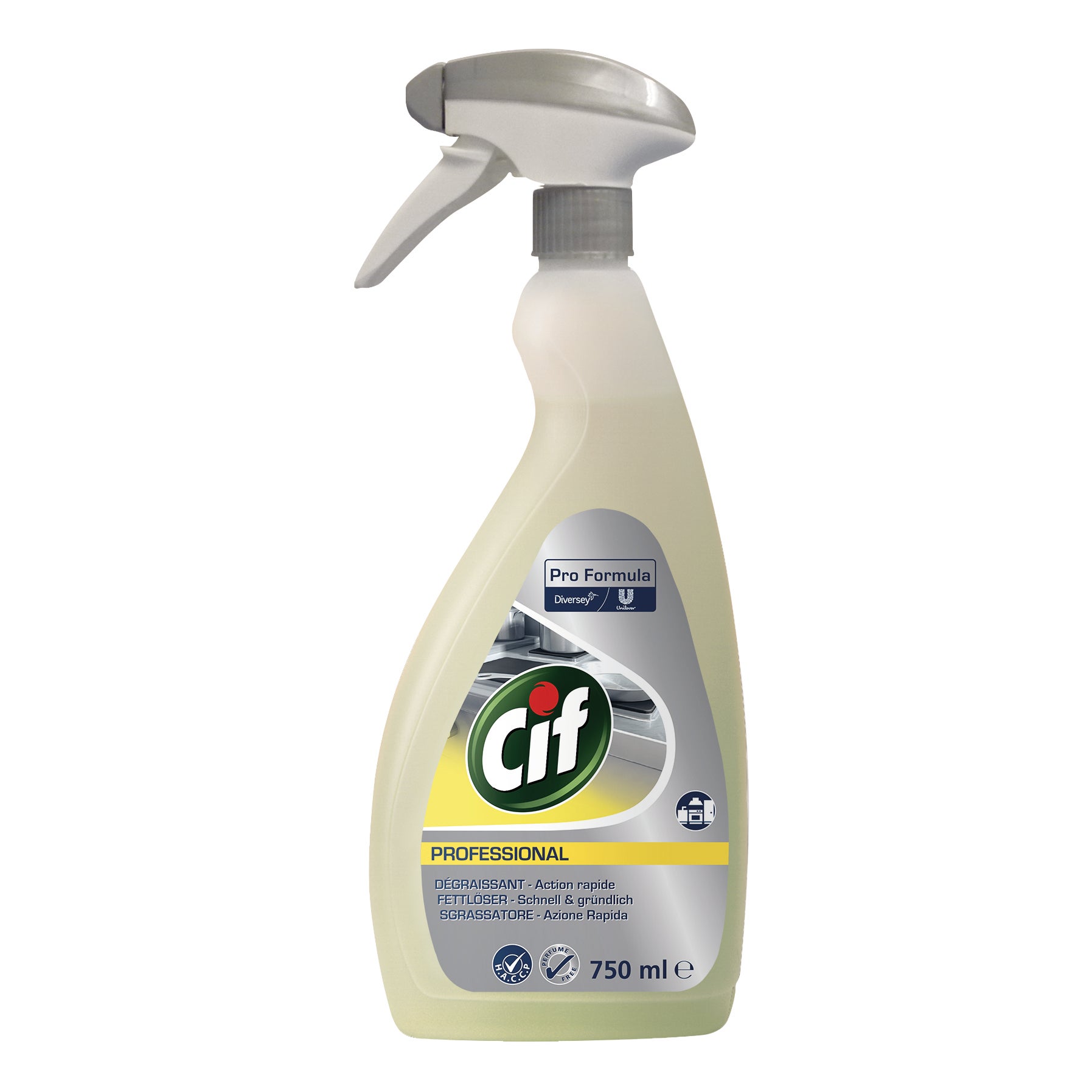 Detergente sgrassante per cucina. Sgrassare. Detergere. Elimina rapidamente grasso e unto da tutte le superfici della cucina. Professionale. Pronto all'uso